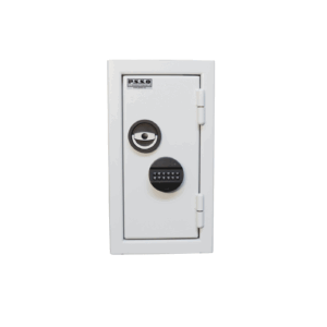 - Skapet leveres standard med EN 1300B sertifisert og VdS-kl. 2 sertifisert omstillbar elektronisk kodelås på hoveddør inne i lokalet. I tillegg leveres en rustfri stålramme til utvendig rustfri stål skuff som gir en flott finish