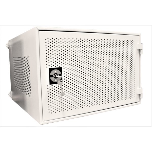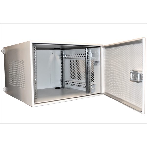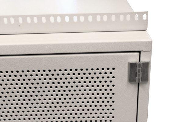 Serverkabinettet SB-19-6U ventilerer komponentene ved naturlig oppdrift gjennom hull i kabinettet. Eget hull for nettkabel og fiber.