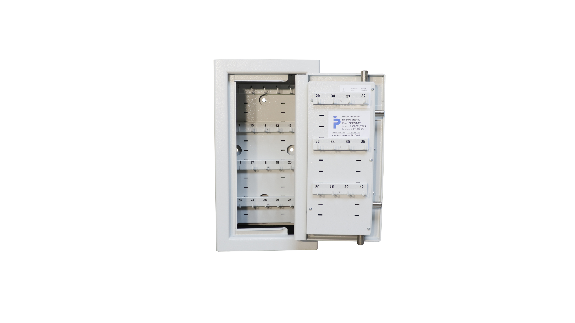 SNS-serien er en kraftig FG-godkjent sikkerhetsskap-serie med FG nr. 1061/18. SNS nøkkelskap-serien er beregnet for oppbevaring av nøkler, bilskilt mm. Konstruert og bygget etter de nye kravene til FG-godkjenning, testet og godkjent av RISE i Sverige (RISE eier over 50% av Sintef i Trondheim) og godkjent av FG i Norge. Kraftig konstruksjon med dobbelt falset overgang mellom dør og ramme samt manganforsterkninger og doble dørforsterkninger av døren. Døren er sikret med manganstål for å beskytte låsene mot angrep. FG-520 godkjenning som stiller vesentlig strengere krav til skapene enn tidligere. Skapene produseres hos en av Europas anerkjente ISO-sertifiserte fabrikker.